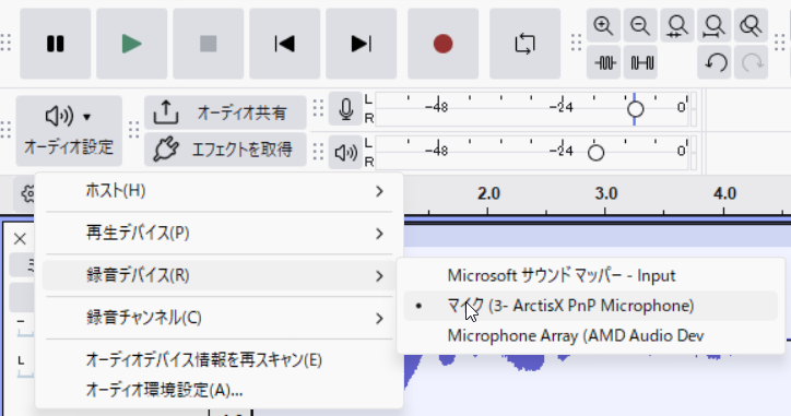- Audacityで音声を録音できる